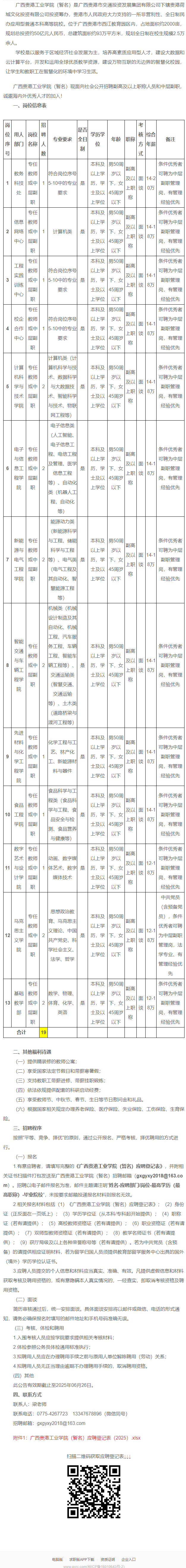 原文標題:廣西貴港工業(yè)學院(暫名) 副高及以上職稱人員和中層副職招聘公告