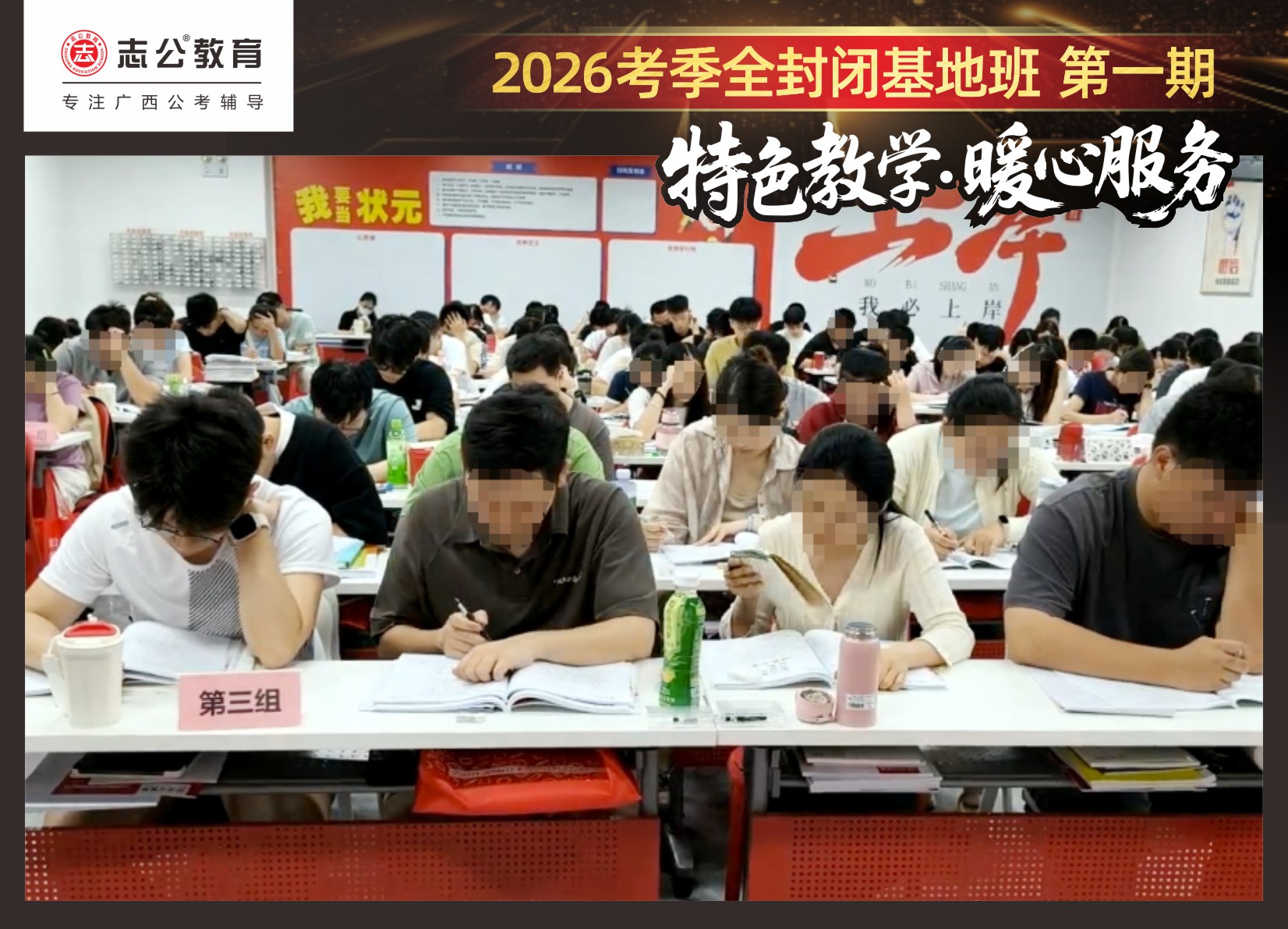 近日,志公教育基地班正式開課后,學(xué)員們?nèi)孢M入緊張而有序的封閉式備考狀態(tài)。為確保每一位學(xué)員都能在最佳狀態(tài)下高效備考,志公教育不僅提供了優(yōu)質(zhì)的教學(xué)資源和師資團隊,更從住宿環(huán)境、飲食健康、學(xué)習(xí)空間、紀律監(jiān)管、心理關(guān)懷、激勵機制等多個維度出發(fā),精心打造了一系列保障措施,確保每一位學(xué)員都能在最佳狀態(tài)下備考,真正實現(xiàn)“學(xué)得安心、住得舒心、吃得放心”。