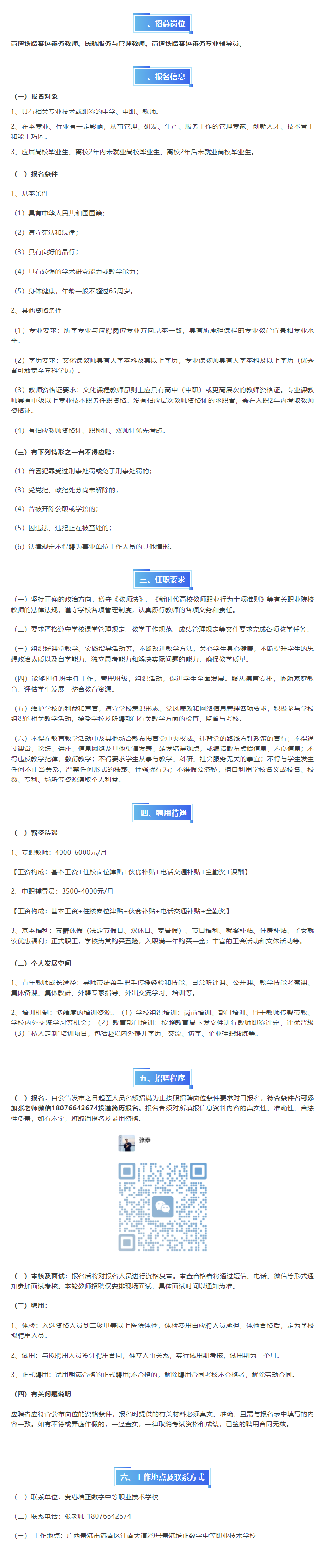 2025年貴港培正數字學校高速鐵路客運乘務專業教師公開招聘公告