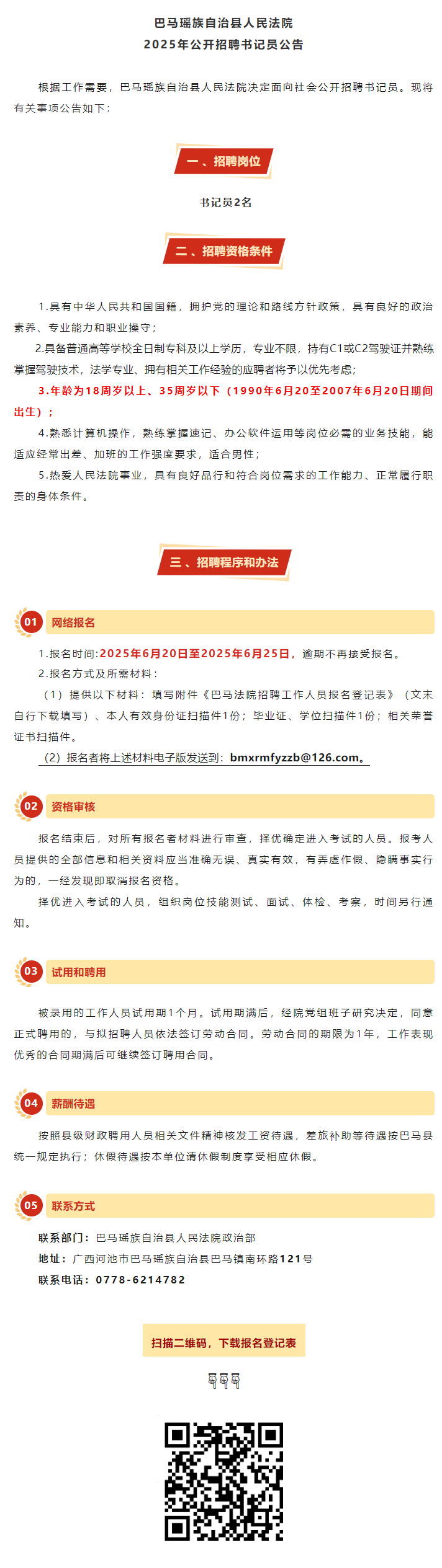 原文標題:巴馬瑤族自治縣人民法院關于公開招聘書記員公告
