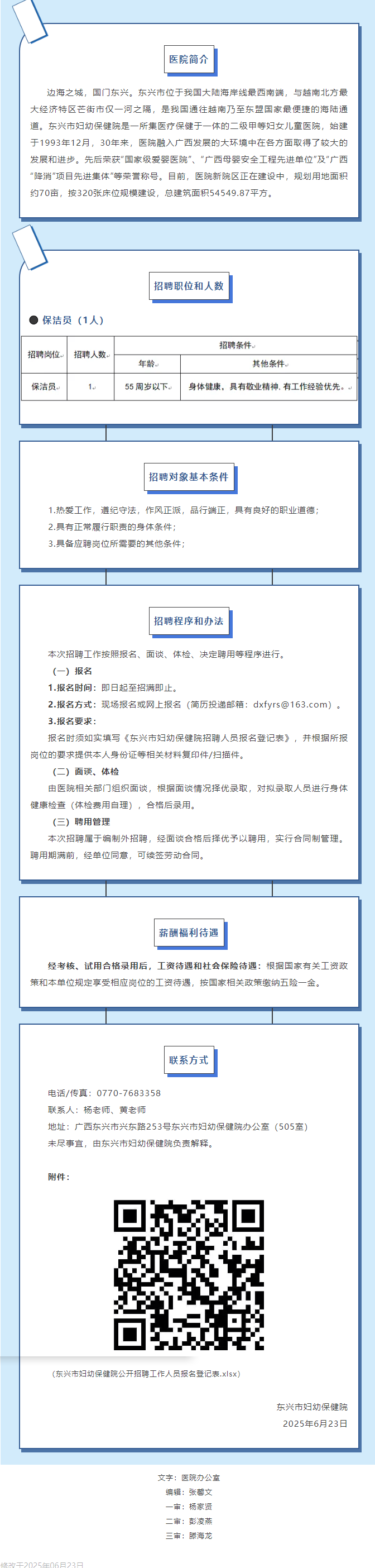 2025年東興市婦幼保健院公開招聘工作人員的公告