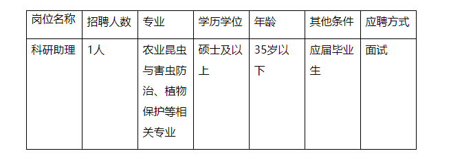 4. 熱愛農業科研工作,具有良好的綜合素質、溝通能力、團隊合作能力及高度的責任心;
