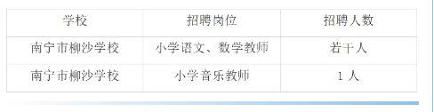 南寧市柳沙學校是青秀區教育局管轄的一所九年一貫制義務教育公辦學校,為保證學校正常開展教育教學工作,根據工作需要,現向社會公開招聘崗位如下: