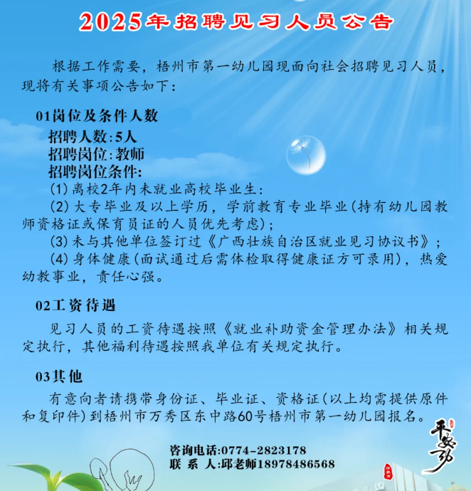 2025年梧州市第一幼兒園招聘見習(xí)人員公告