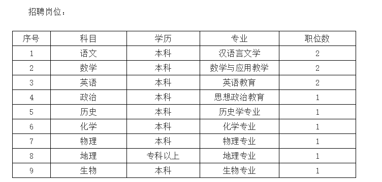 招聘條件:遵守國家法律、法規,師德良好,服從管理,服從安排,教風嚴謹,為人正直,事業心和責任心強,本科及以上學歷,普通話流暢、準確,富有愛心,有志從事教育事業,有一定的管理和人際協調能力,學業成績優秀的應、歷屆師范院校或同等學歷的其他院校畢業生,有多年從教經驗的教師可適當放寬年齡優先聘用。