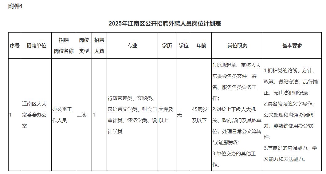 1.2025年江南區公開招聘外聘人員崗位計劃表