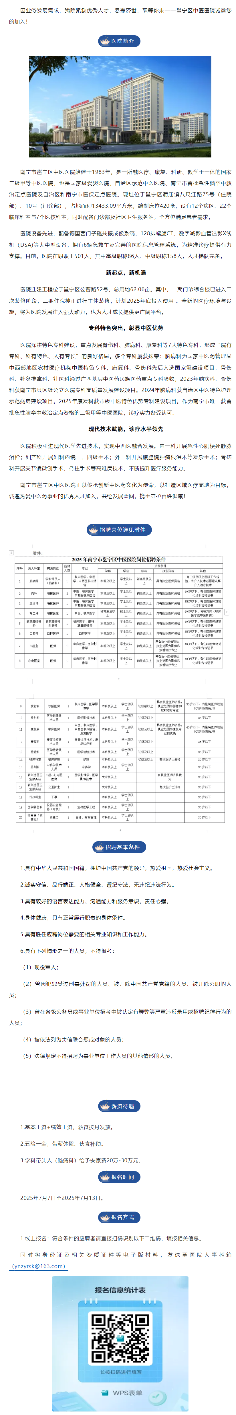 原文標題:南寧市邕寧區中醫醫院2025年公開招聘編外人員公告