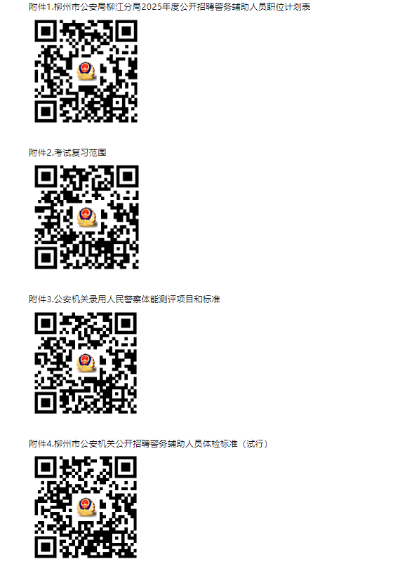 根據相關規定,柳州市公安局柳江分局2025年面向社會公開招聘警務輔助人員(以下簡稱輔警)。現將有關事項公告如下: