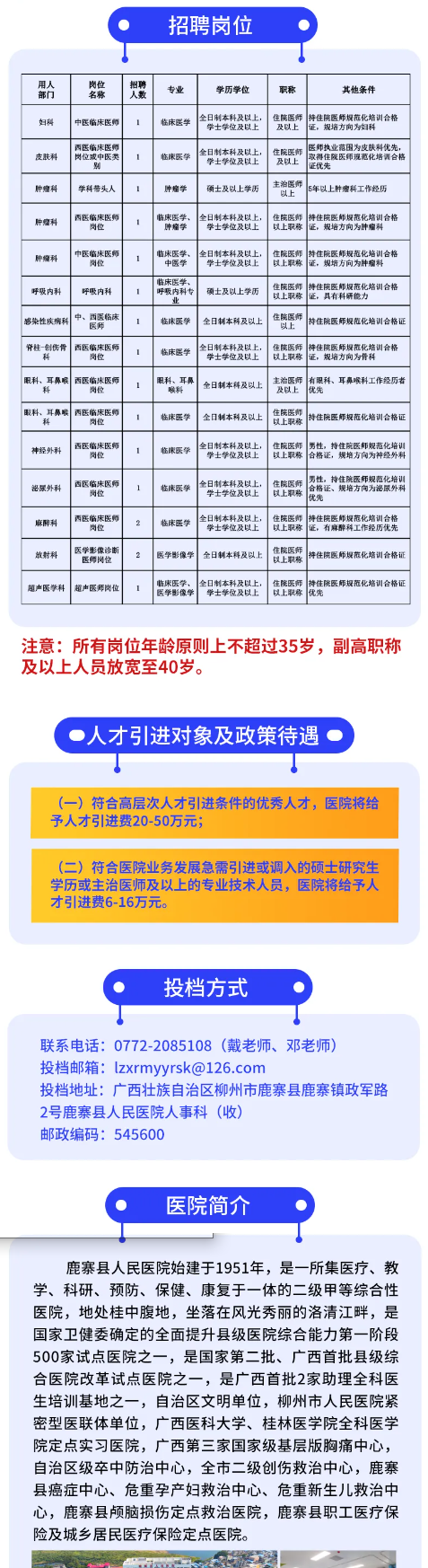 2025年鹿寨縣人民醫院人才招聘17人