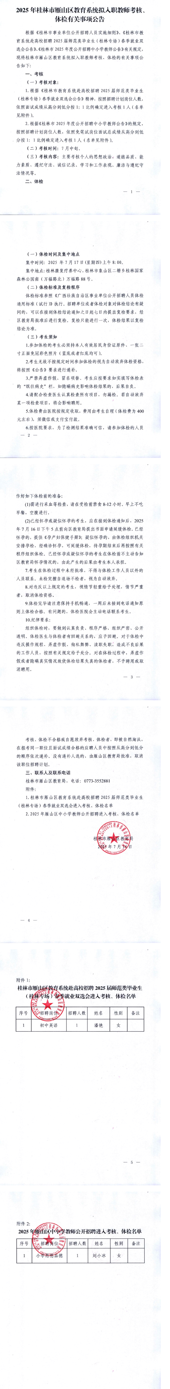 2025年桂林市雁山區教育系統擬入職教師考核、體檢有關事項公告