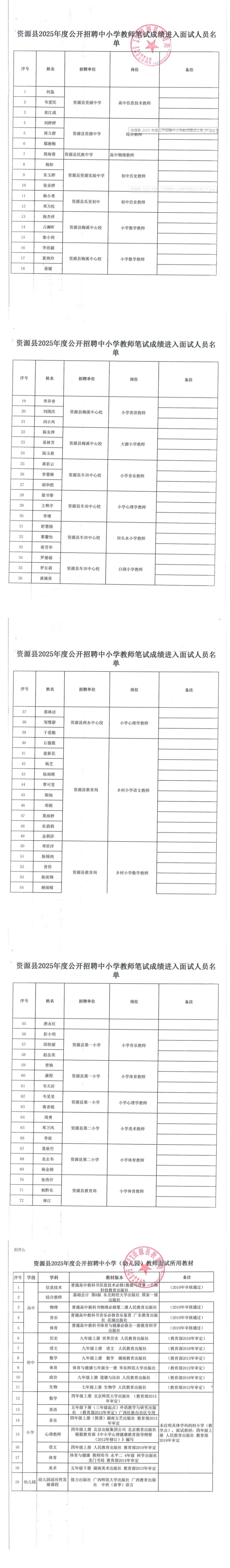 資源縣2025年度公開招聘中小學教師面試公告