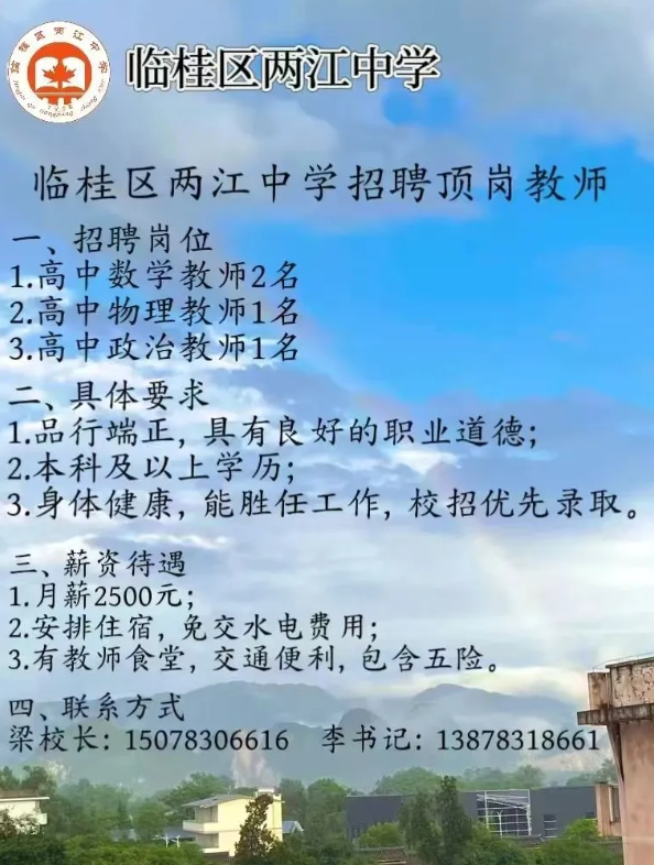 2025年桂林市臨桂區(qū)兩江中學招聘頂崗教師4人