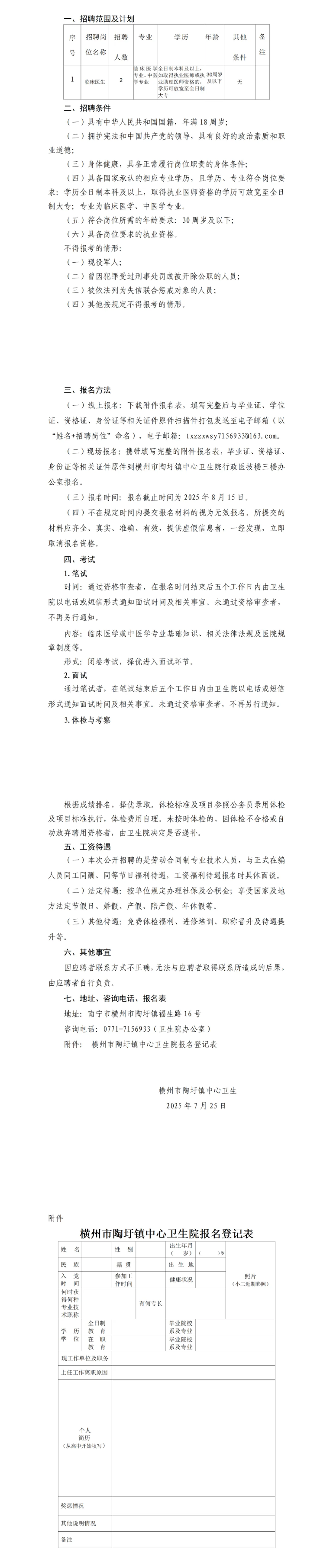 橫州市陶圩鎮中心衛生院公開招聘編外衛生專業技術人員的公告