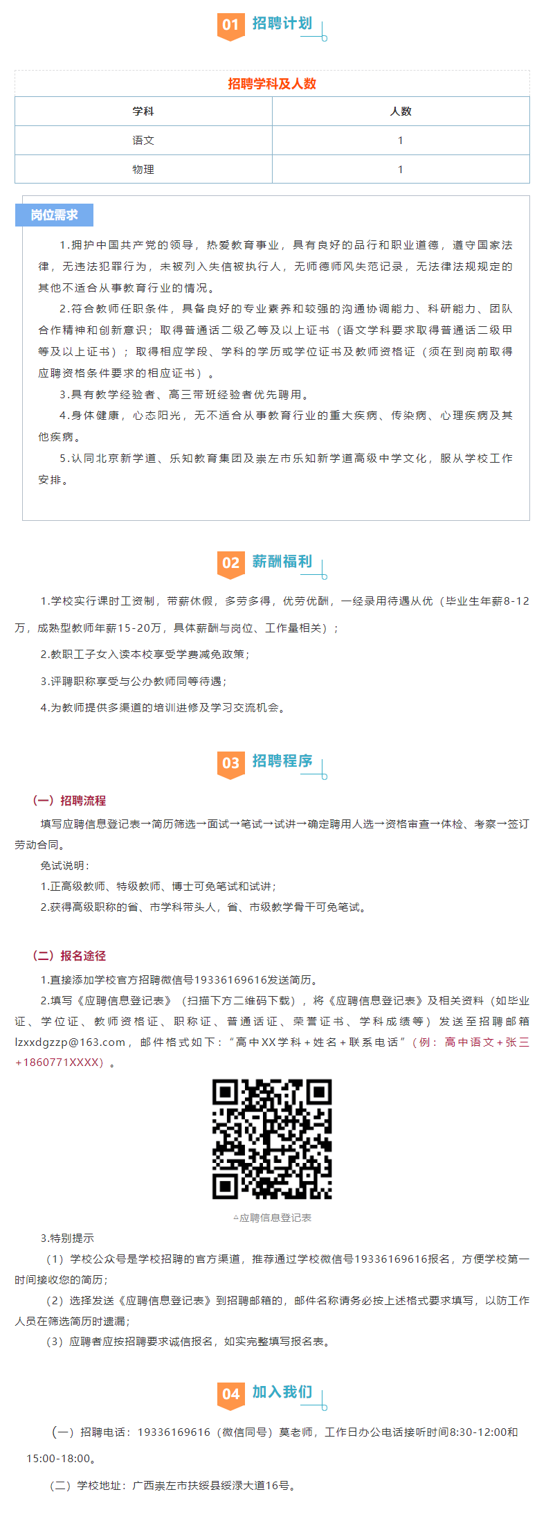 2025年崇左樂知新學道高中急招語文、物理學科教師共2人