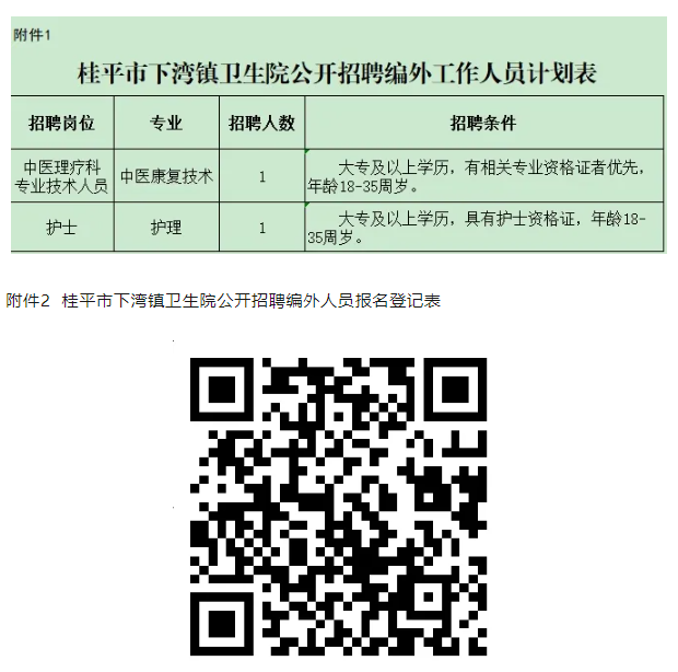 附件:1.桂平市下灣鎮(zhèn)衛(wèi)生院公開招聘編外工作人員計劃表