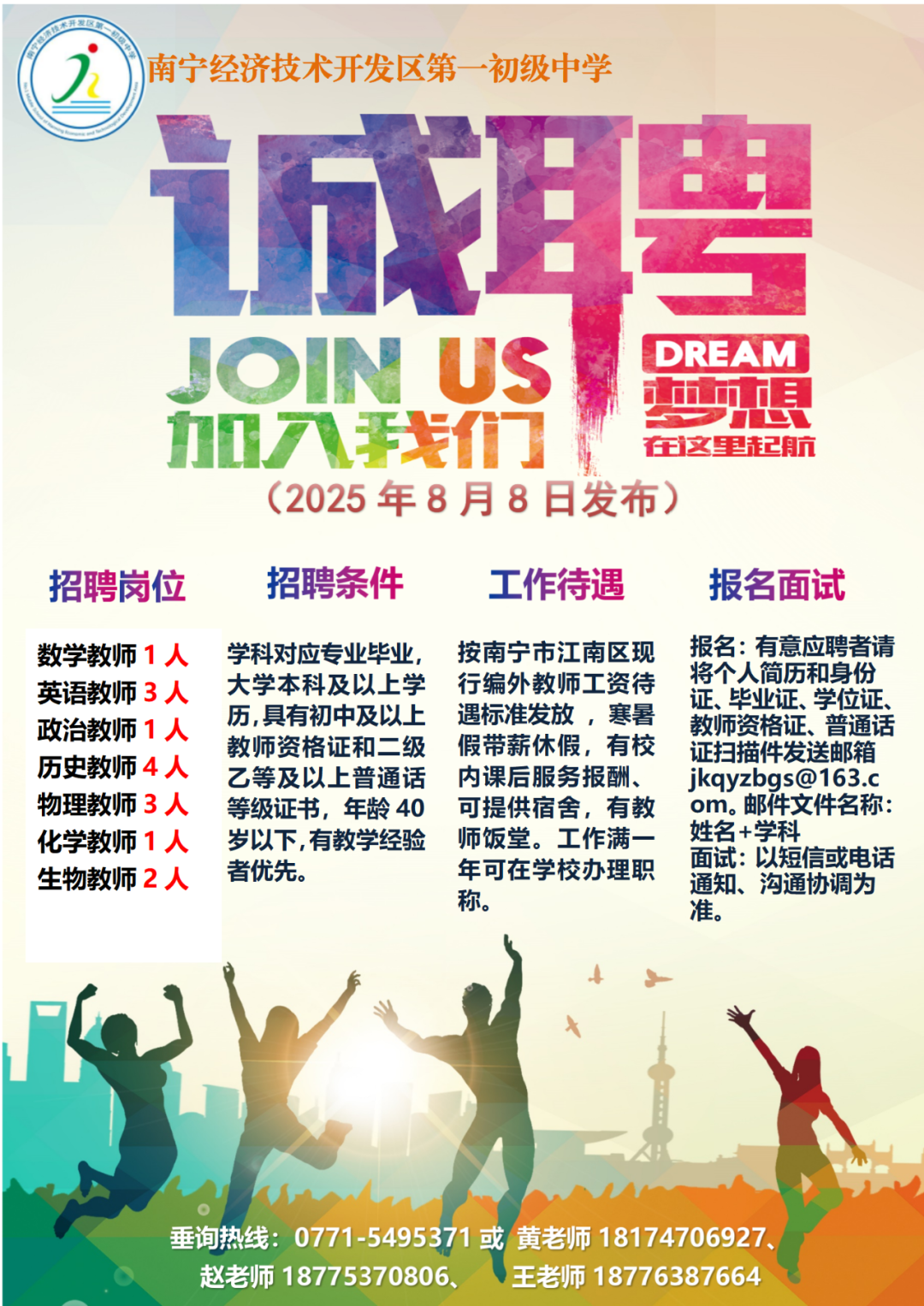 原文標題:南寧經濟技術開發區第一初級中學2025年秋季學期公開招聘編外教師公告