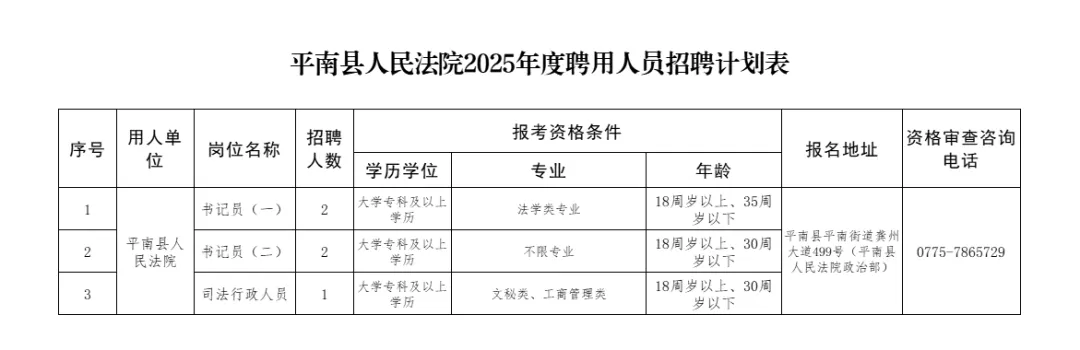 附件:1.平南縣人民法院2025年度聘用人員招聘計(jì)劃表