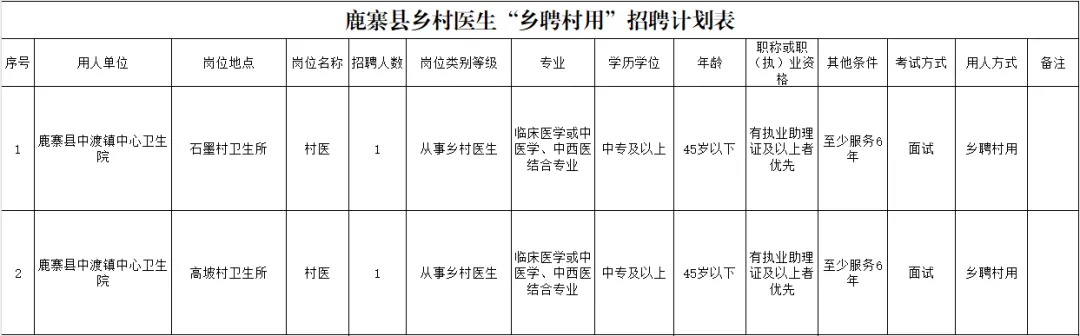 原文標題:鹿寨縣中渡鎮中心衛生院:2025年“鄉聘村用”鄉村醫生招聘公告