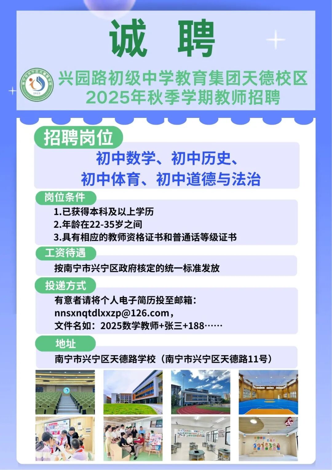 2025年南寧市興園路初級中學教育集團天德校區(qū)秋季學期教師招聘