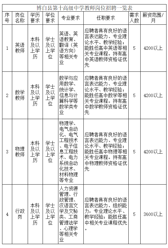 廣納賢才,共創未來,這里的舞臺無限廣闊,歡迎加入博白縣第十高級中學。