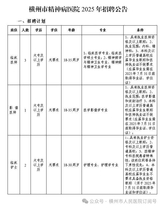 原文標題:橫州市精神病醫院2025年招聘公告