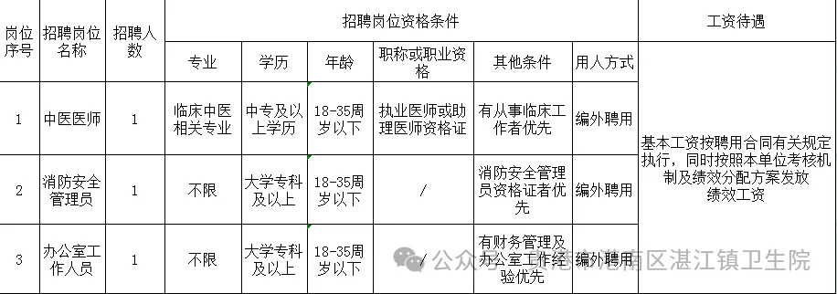 湛江鎮衛生院公開招聘公告