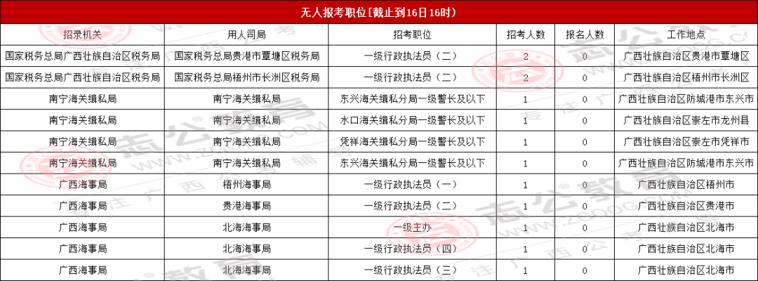 考生們注意!截至10月16日16時,2026國考(廣西)地區還有71個無人報考,占全部748個職位的9.49%。想避開激烈競爭的話,不妨結合自己的條件,多看看這些冷門崗位~