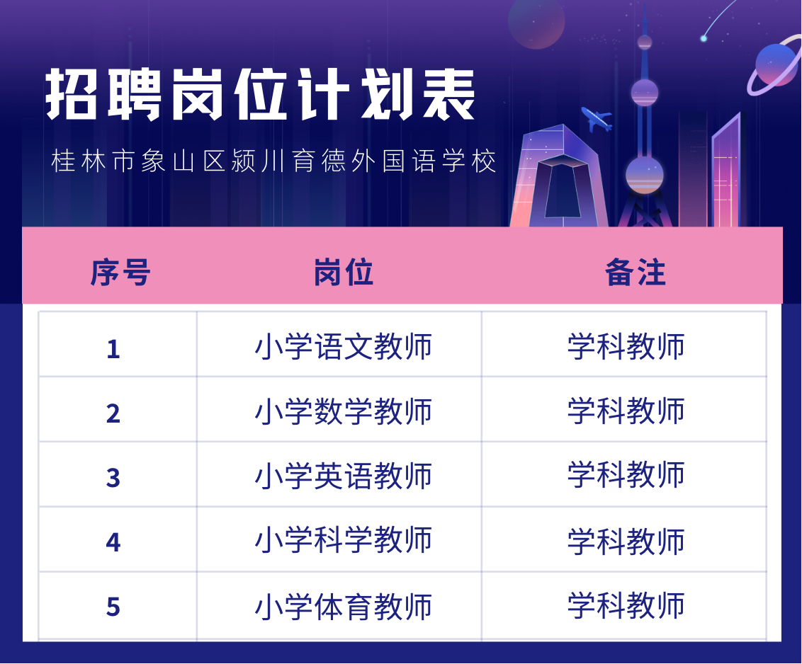 2025年桂林市象山區潁川育德外國語學校招聘