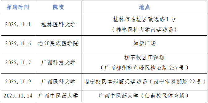 三、廣西各醫學院校雙選會舉辦時間、地點