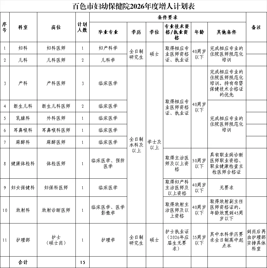 原文標題:百色市婦幼保健院2026年崗位招聘公告