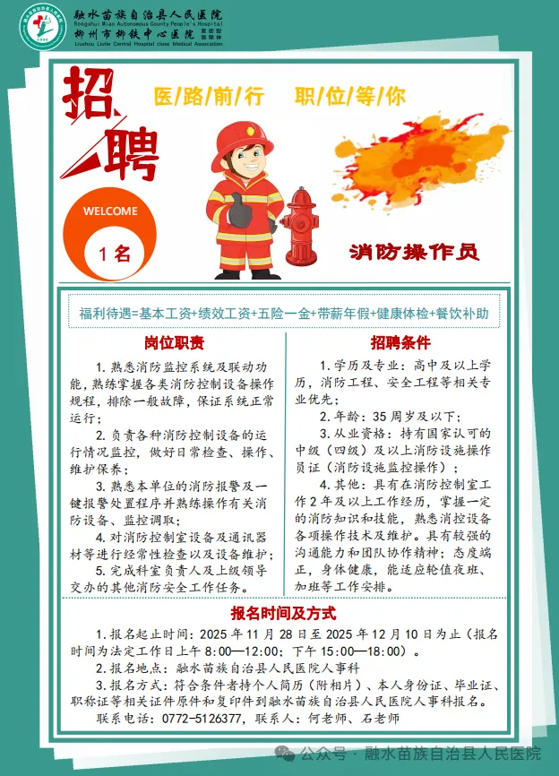 原文標題:2025年融水苗族自治縣人民醫院招聘消防操作員1名