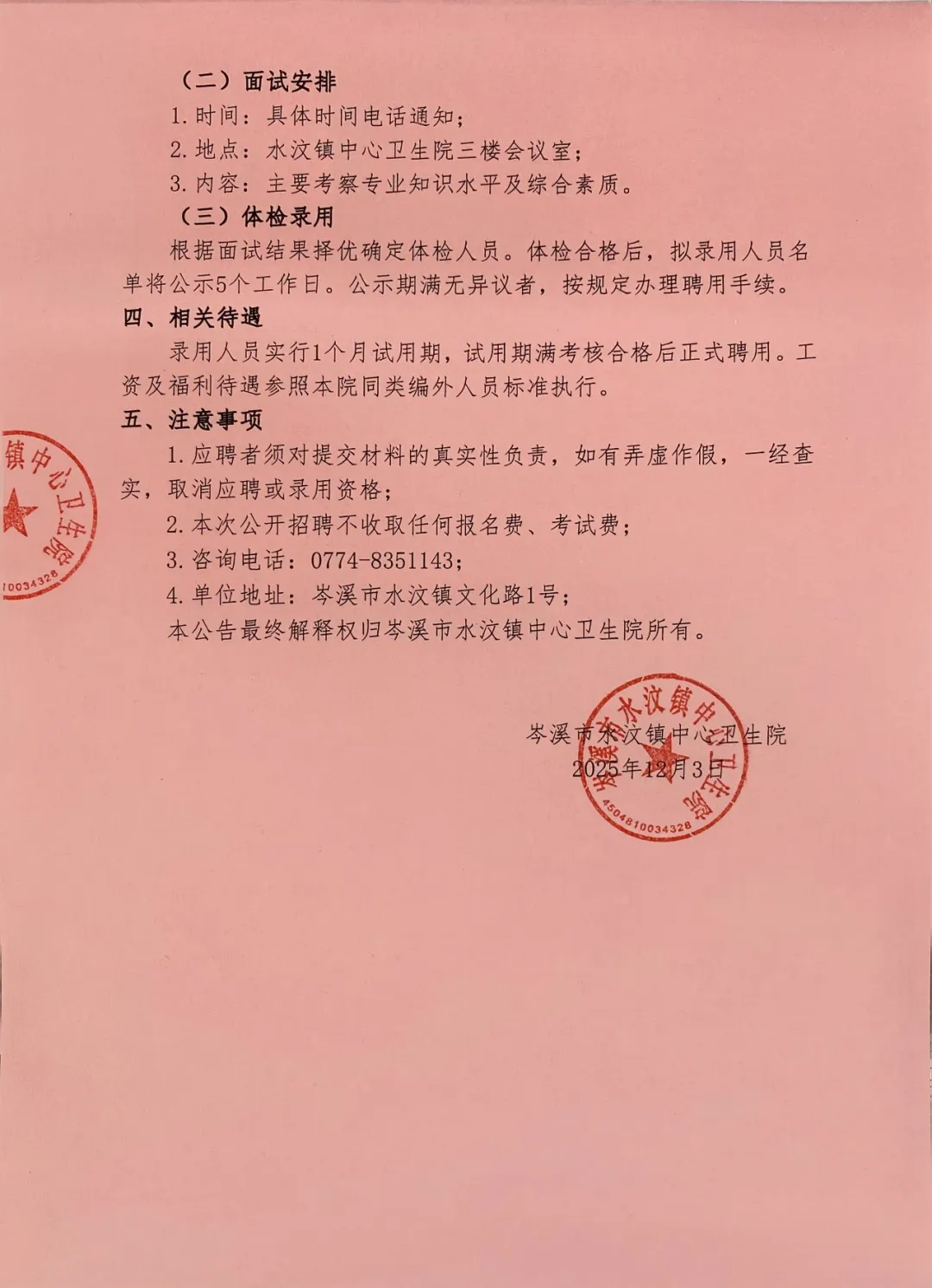 原文標題:2025年梧州岑溪市水汶鎮中心衛生院招聘護士和康復技師