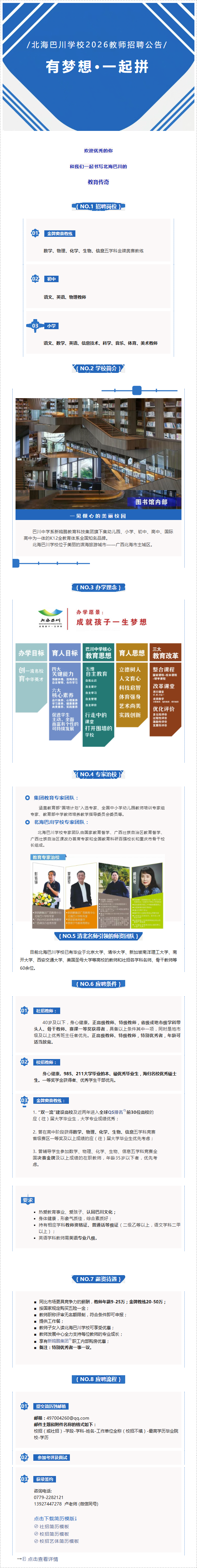 原文標題:【北海巴川2026招聘公告】初中、小學教師、金牌奧賽教練