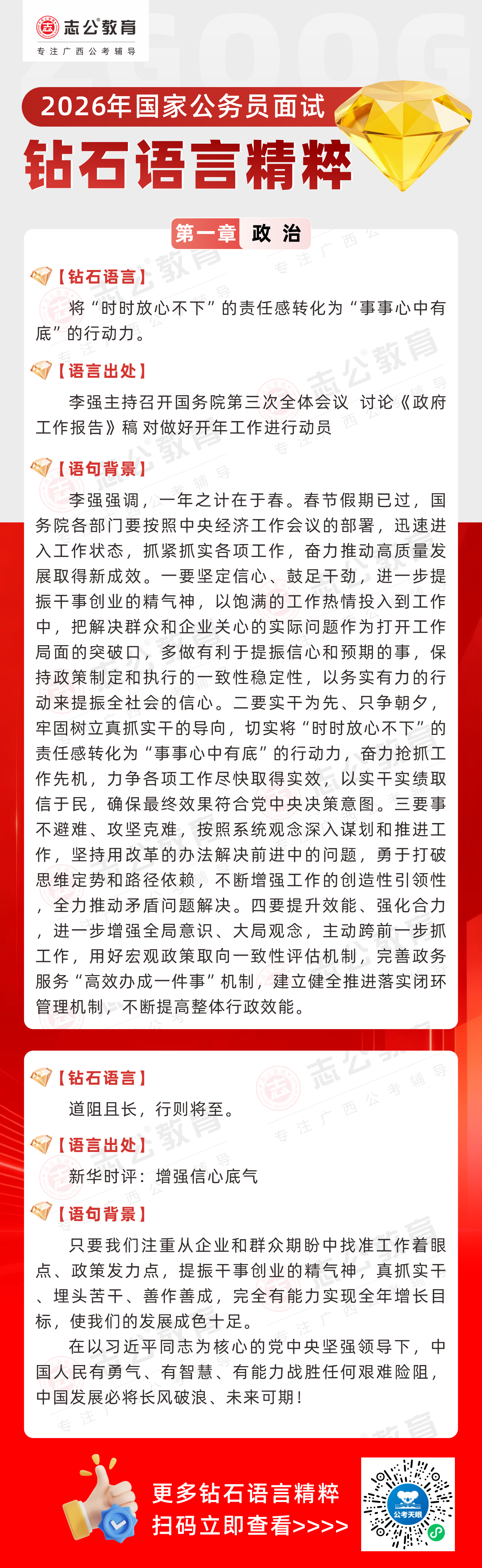 志公教育推出《2026國家公務員面試·鉆石語言精粹》政治篇!幫助考生把握政治類題目應答邏輯,提升語言表達層次,助你在面試中脫穎而出。備考2026國考面試,從掌握“鉆石語言”開始!