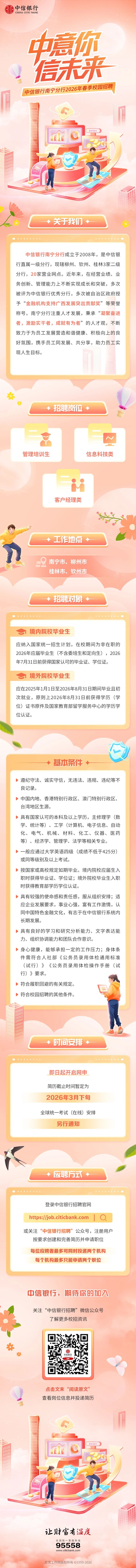 原文標題:中信銀行南寧分行2026年春季校園招聘