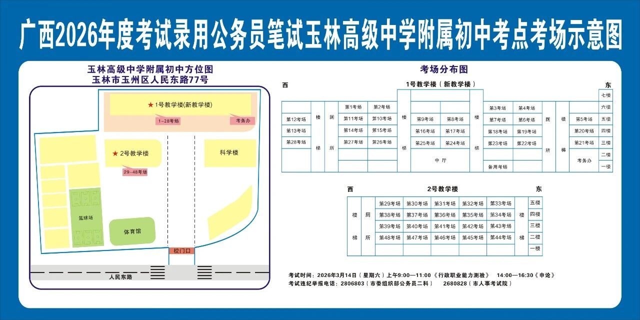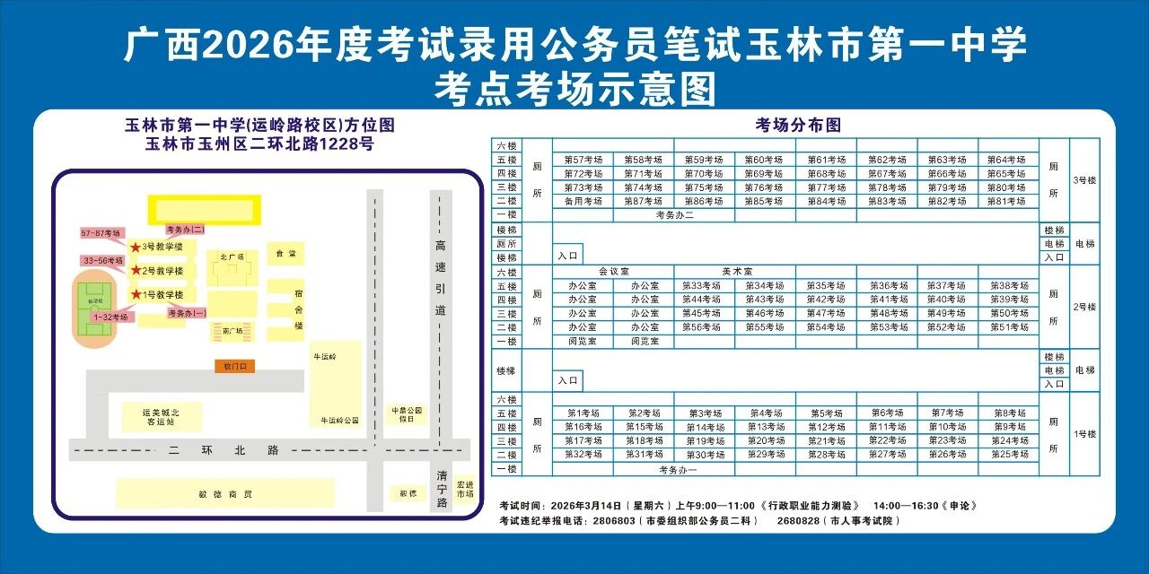 廣西2026年度考試錄用公務員(選調(diào)生)筆試將于3月14日舉行,為進一步提升玉林考區(qū)服務保障質(zhì)量,現(xiàn)就有關注意事項提示如下,請廣大考生做好應試準備工作,準確掌握考試時間、考點地址及相關注意事項。