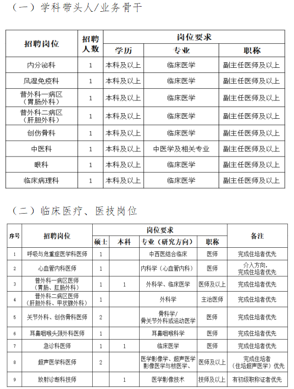 根據醫院發展需要,現面向社會招聘臨床崗位各層次人才,有關招聘事項公告如下: