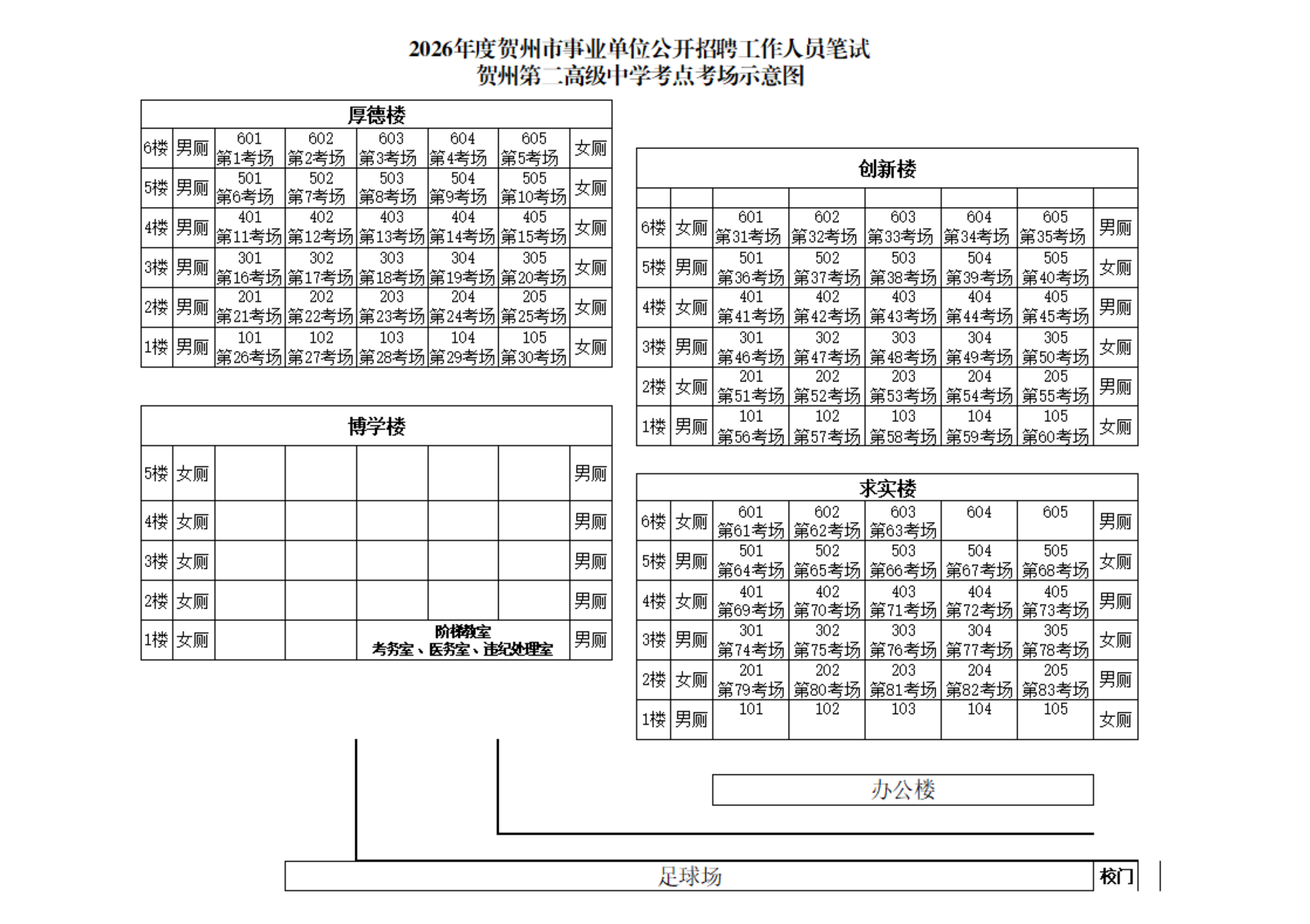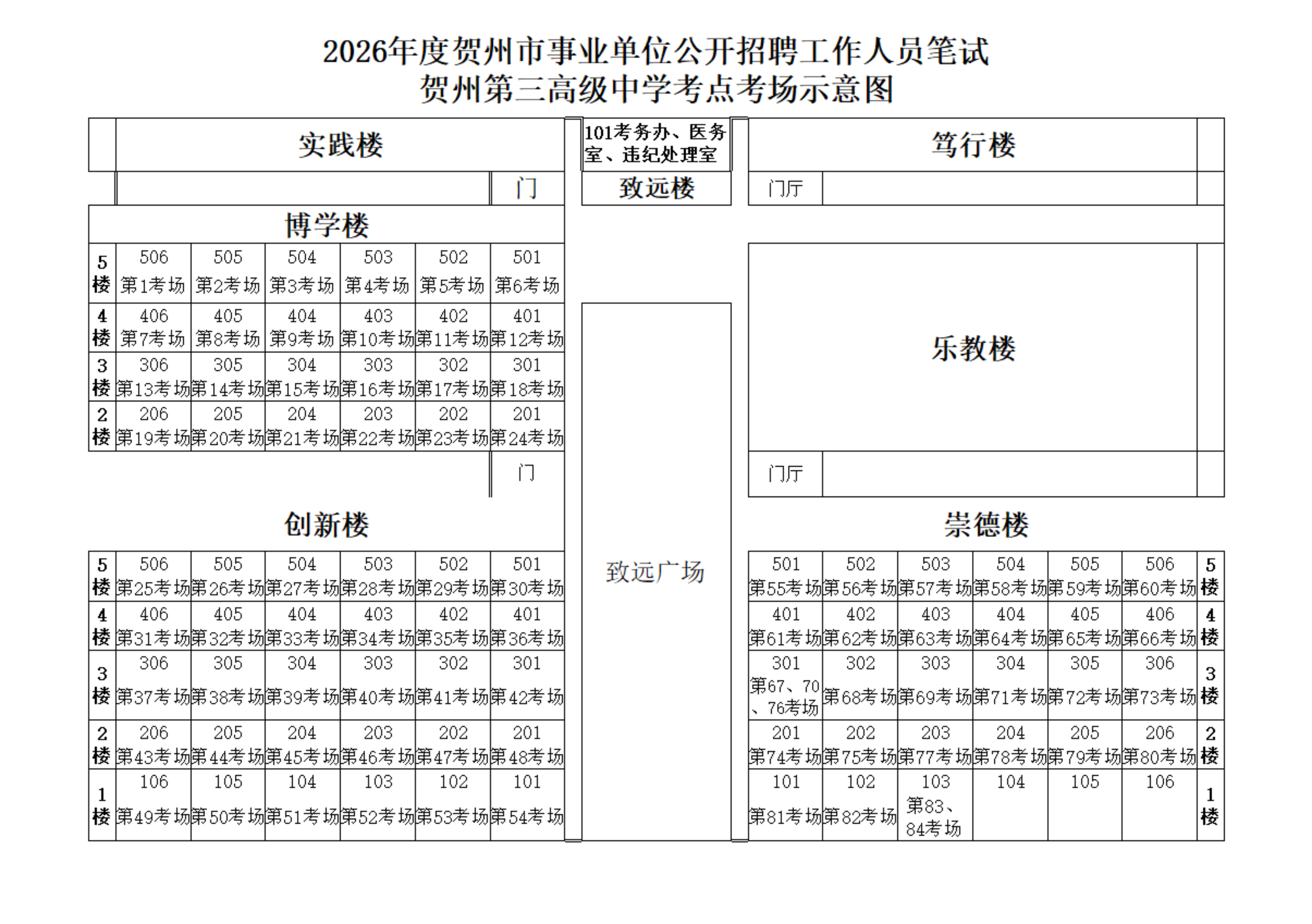 考生提前了解準考證上指定的考試地點,熟悉考點學校地址、交通路線,考試當天預留足夠時間,避免因堵車、走錯考點或遲到等原因影響參加考試。請關注考試當天天氣,注意做好防雨防寒防滑等個人防護準備。本次考試賀州市考區共設3個考點,分別為: