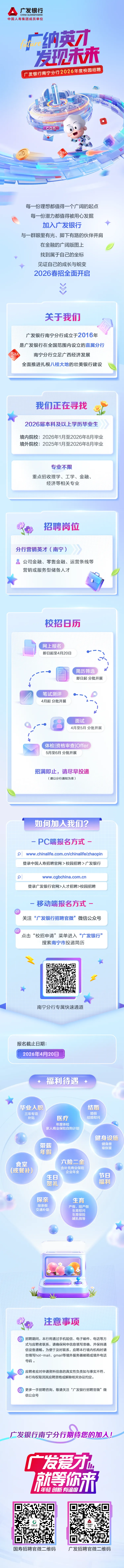 原文標題:廣發銀行南寧分行2026年度春季校園招聘公告
